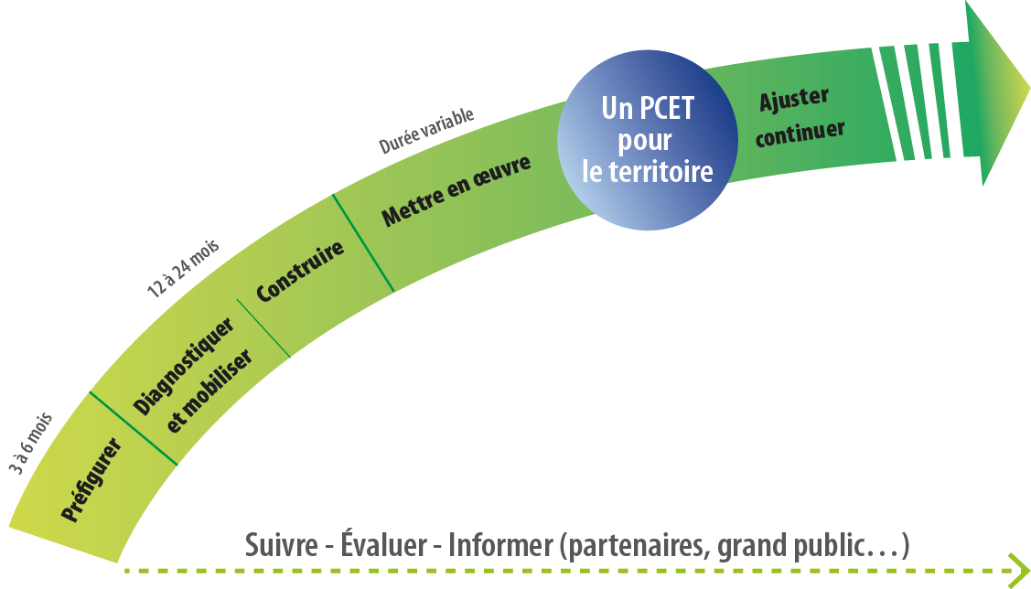 Afin de se doter de toutes les conditions de succès du PCET, la collectivité s’organise en interne, procède au calibrage du projet, engage la concertation dans la durée.